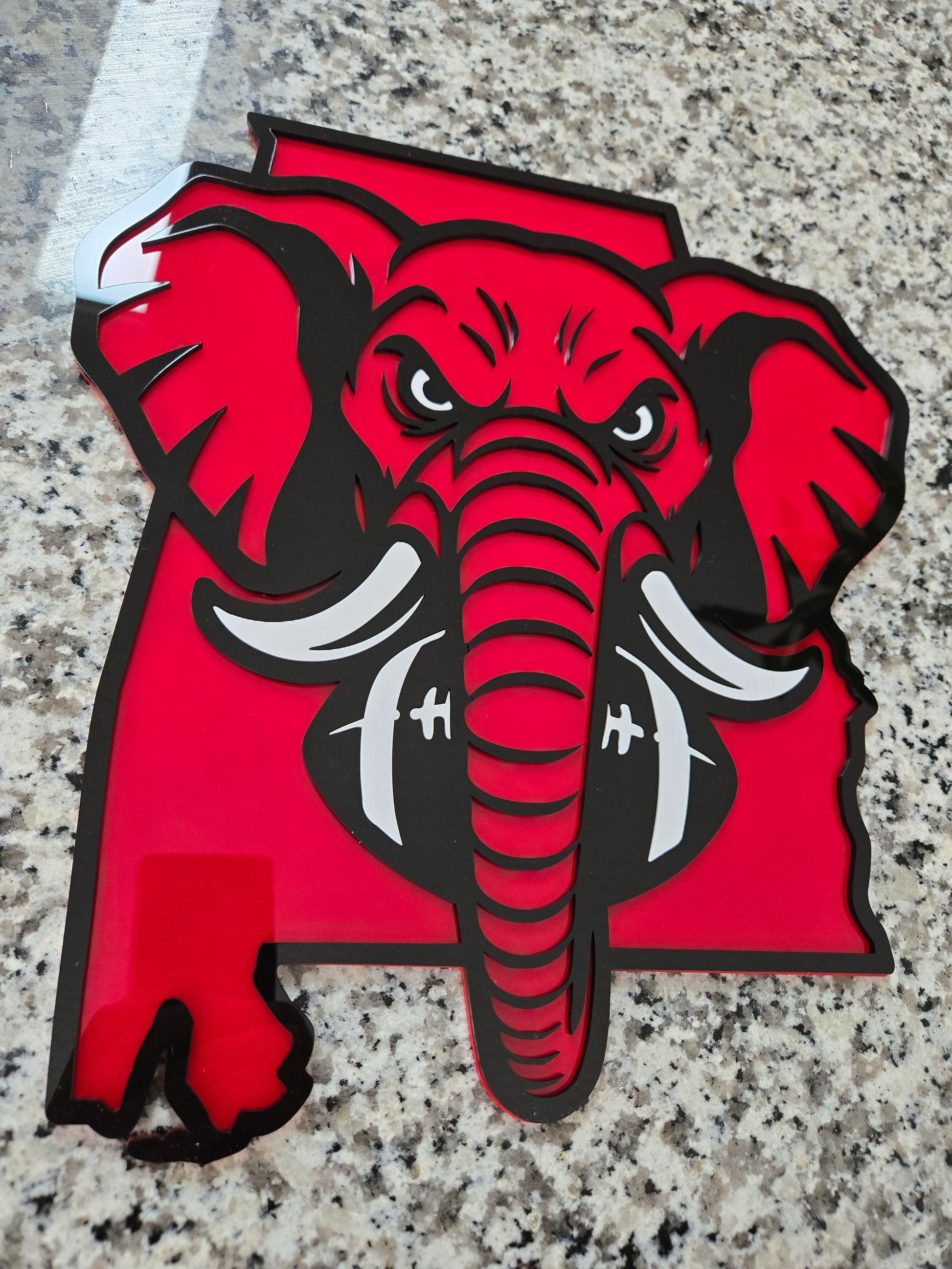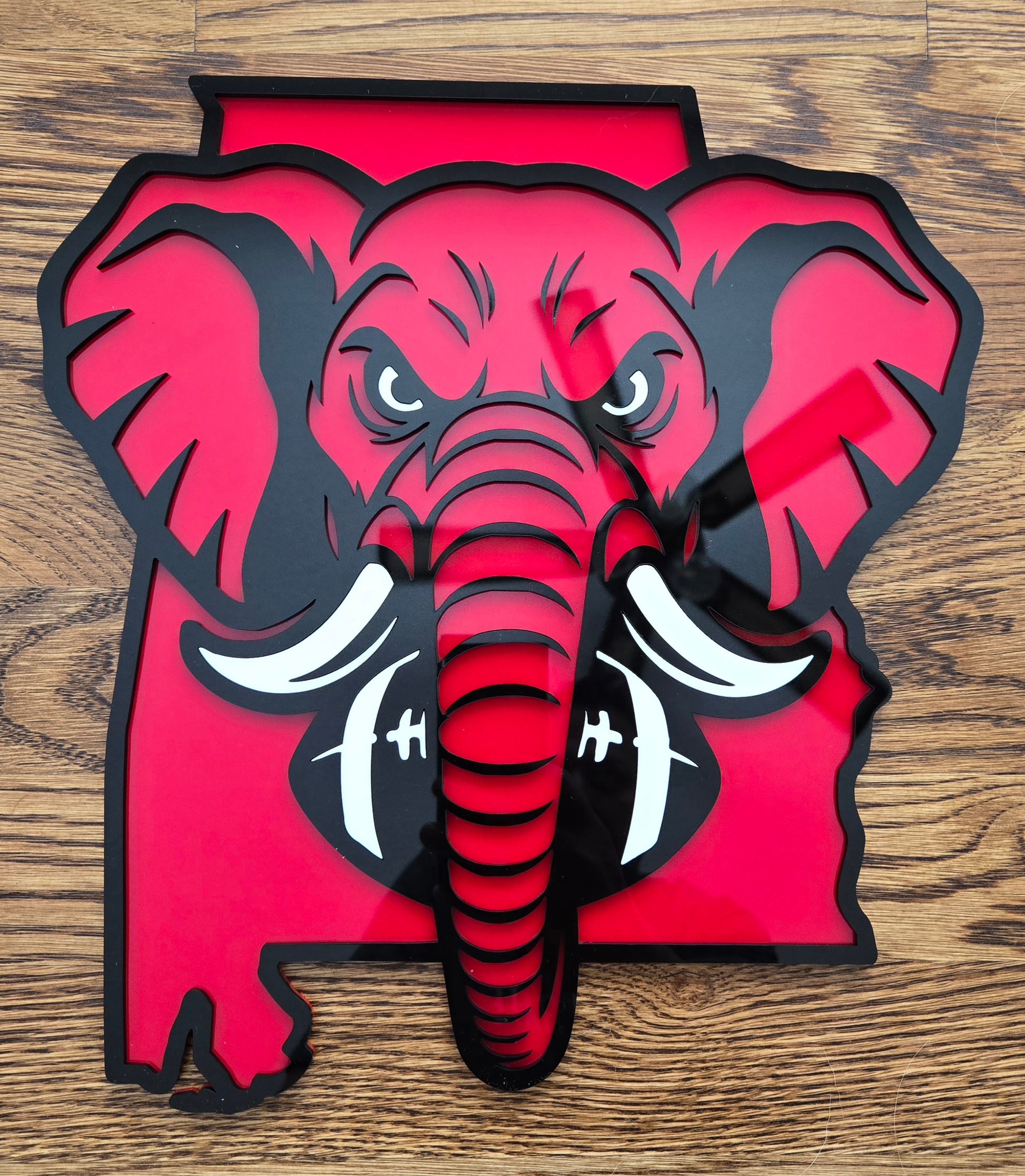 Celebrate your Crimson Tide spirit with this bold, handcrafted acrylic wall art: the Acrylic Alabama Football Elephant Sign. Designed for die-hard fans, this piece brings together precision cut acrylic layers and striking design to make any space game-day ready.